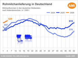 05.02.2026 (AMI) – Die bundesweite Milchanlieferung legte im Januar kontinuierlich zu und bewegte sich dabei anhaltend deutlich über dem Vorjahresniveau.   Mehr
