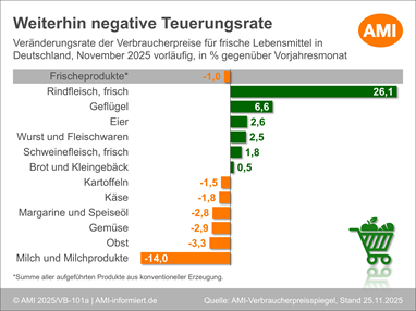 Frische Lebensmittel: Teuerungsrate erneut im negativen Bereich