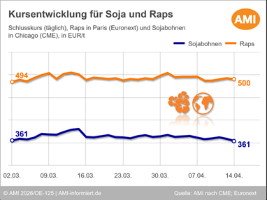 08.04.2026 (AMI) – Die Ölsaatenmärkte zeigen sich schwächer und volatil, geprägt von steigenden Rohölkursen und geopolitischen Spannungen im Nahen Osten. Ein komfortables Angebot begrenzt das Aufwärtspotenzial der Kurse.   Mehr