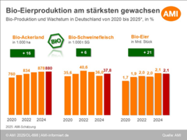 17.12.2025 (AMI) - Die Nachfrage nach Bio-Produkten ist 2025 weiter deutlich gewachsen – allein in den ersten zehn Monaten zeigen die YouGov Daten für Bio-Frischeprodukte ein Umsatzwachstum von fast 8 %. Die Ausweitungen stammen vor allem aus den Einkaufsstätten des Lebensmitteleinzelhandel.   Mehr