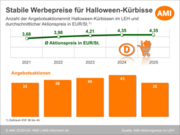 02.10.2025 (AMI) – Die Tage werden kürzer, das Laub färbt sich um, und gebietsweise gab es die ersten Nachtfröste. Kurzum, der Herbst ist da, und mit ihm auch die Angebotsaktionen mit Herbstgemüse im Lebensmitteleinzelhandel. Im bisherigen Verlauf war die Werbeintensität ähnlich hoch wie im Vorjahr. Bei den Preisen gab es jedoch unterschiedliche Entwicklungen. Welche Gemüsearten stechen besonders heraus?