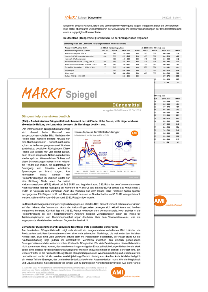 Gain compact background information for your customer conversations with the AMI Market Charts Strawberry. You will receive an assessment of the current situation and an outlook. Mehr