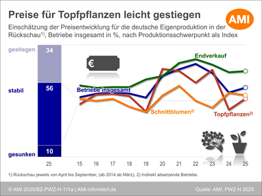 03.12.2025 (AMI) – Die Kaufzurückhaltung der Kunden in Deutschland gepaart mit den herausfordernden Produktions- und Transportbedingungen fordern Tribut: Es werden für das Jahr 2026 weniger Pflanzen aus dem Frühjahrs- und Sommersortiment geplant.   Mehr